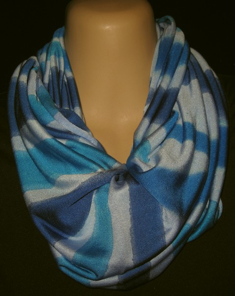 | Der Jersey-Loop ist mein vielseitigstes Produkt, die beiliegenden Bindetipps zeigen neun Variationsmöglichkeiten, vom Doppelring über Stirnband, Kopftuch oder Kette bis zum Schultertuch oder Bolero! |