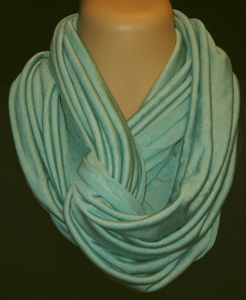 | Der Jersey-Loop ist mein vielseitigstes Produkt, die beiliegenden Bindetipps zeigen neun Variationsmöglichkeiten, vom Doppelring über Stirnband, Kopftuch oder Kette bis zum Schultertuch oder Bolero! |